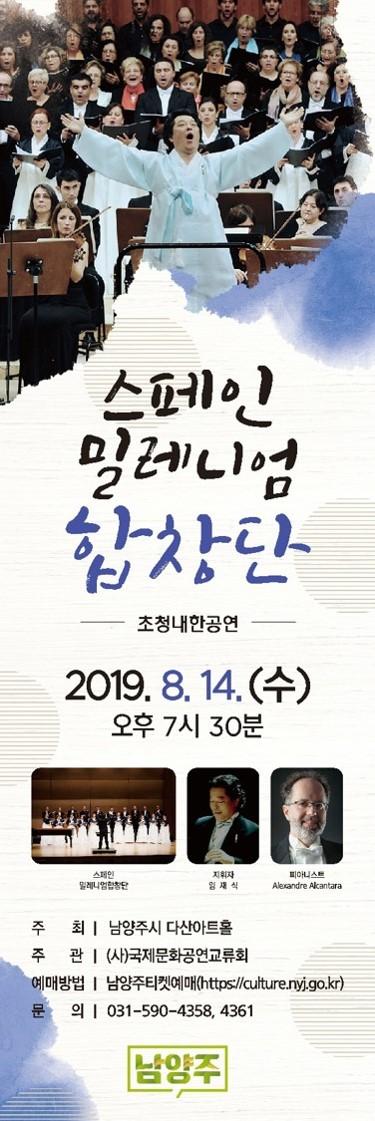 남양주시는 광복74주년을 맞아 오는 14일 오후 7시 30분 다산아트홀에서 스페인밀레니엄합창단을 초청하여 시민들과 함께하는 합창공연을 개최한다.