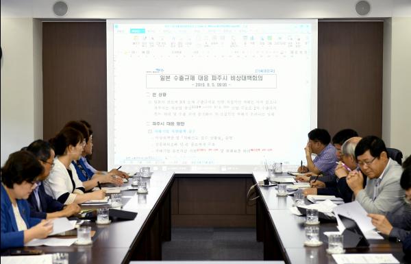 파주시는 국·소·단장이 참석한 가운데 비상대책회의를 열어 일본의 수출규제에 따른 관내 기업의 피해상황을 점검하고 시 차원의 대응방안을 마련해 적극 전개해 나가기로 했다.