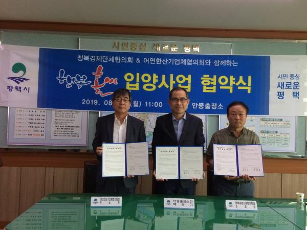 평택시 안중출장소는 5일 소장실에서 청북경제단체협의회 및 어연한산기업체협의회와 깨끗하고 쾌적한 생활환경을 조성하고자 행복홀씨 입양사업 협약식을 가졌다.