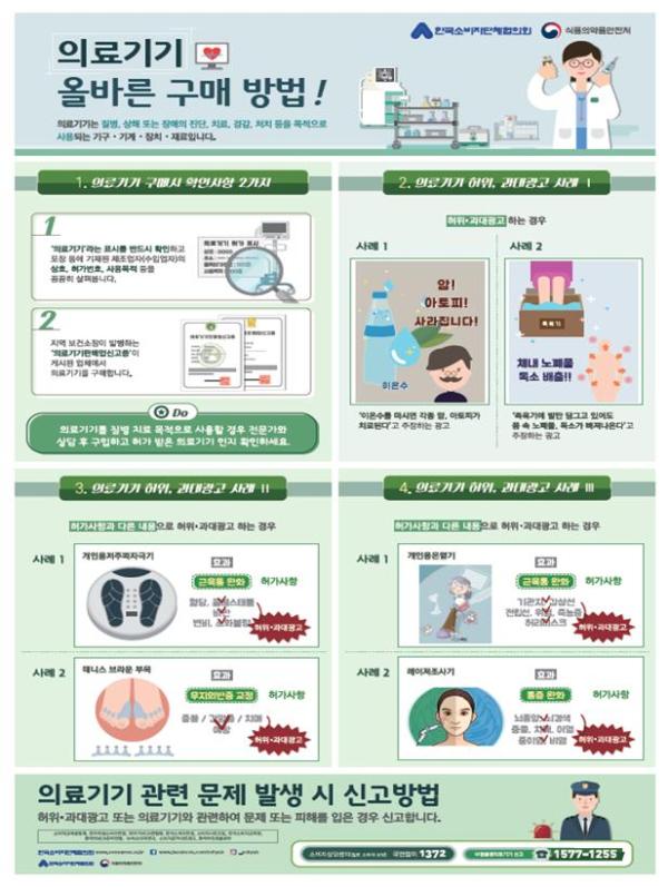 식약처는 의료기기 구매시 거짓 과대 광고에 속지 않도록 소비자들의 신중한 구매를 당부하면서, 소비자 피해 예방을 위한 지도·점검을 지속할 것이라고 밝혔다.