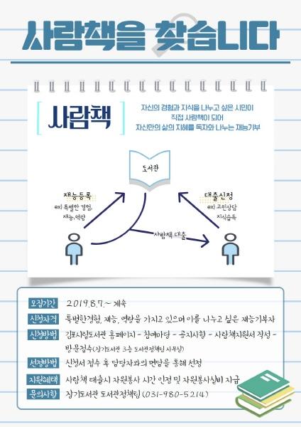 사람책 도서관은 재능기부로 운영되며, 자세한 문의사항은 ☏031-980-5214로 하면 된다.
