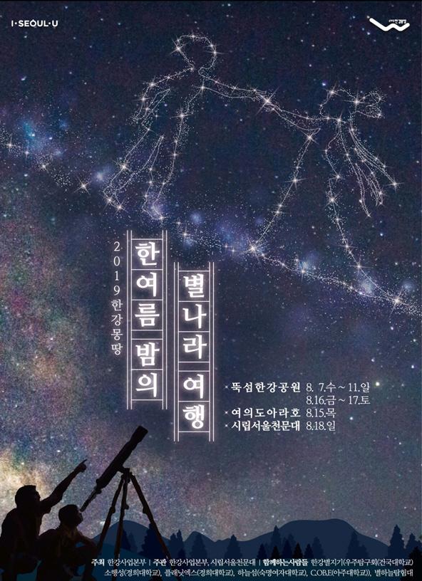 기존에 뚝섬한강공원에서만 진행되던 ‘한 여름 밤의 별나라 여행’ 이 올해는 특별 이벤트로 여의도한강공원 아라호와 시립서울천문대로 장소를 확장한다.