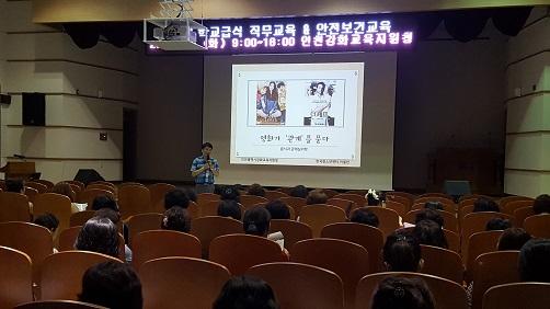 연수는 식중독 사전 예방을 위한 학교급식 위생·안전교육, 산업재해 예방 등을 위한 산업안전보건교육, 투명한 학교급식을 위한 청렴교육, 직장 내 관계 개선을 위한 소양교육 등으로 이루어졌다.