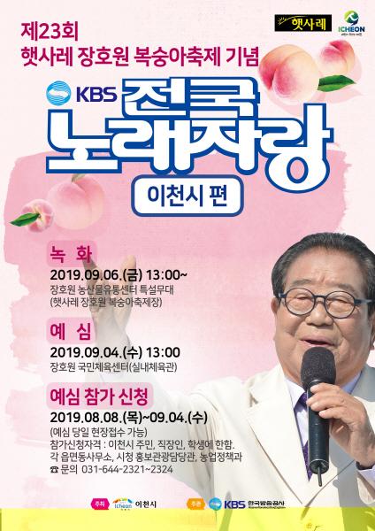 경기도 이천시는 다음달 6일 장호원 농산물유통센터 특설무대에서 ‘KBS 전국노래자랑’ 이천시편이 공개 녹화된다고 밝혔다.