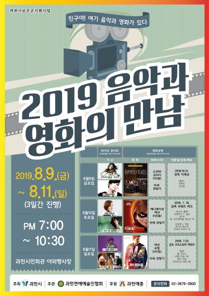 무더위로 지친 심신을 음악과 영화로 위로해 줄 문화 행사가 과천에서 열린다. 과천시는 오는 9일부터 11일까지 3일 동안 매일 저녁 7시부터 과천시민회관 야외무대에서 ‘음악과 영화의 만남’을 개최한다고 7일 밝혔다.