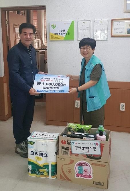 국민건강보험공단 양평지사는 7일 지역의 어려운 이웃을 위해 강상면사무소에 100여만 원의 이웃돕기 물품을 전달했다.