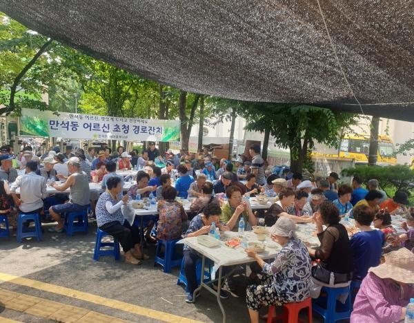 인천 동구 만석동은 지난 6일, 새마을부녀회주관으로 만석동 행정복지센터 앞마당에서 어르신 300명을 모시고 ‘건강염원 삼계탕 나눔행사’를 개최했다.
