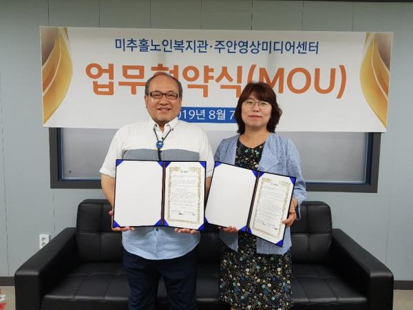 주안영상미디어센터와 미추홀노인복지관은 지난 7일 미추홀노인복지관에서 노인 세대의 영상미디어 교육을 위해 협력체계를 구축하는 협약식을 개최했다.