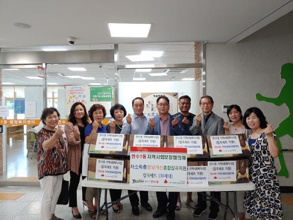 연수1동 지역사회보장협의체가 지난 6일 무더운 여름철 체력을 보강하고 건강을 유지할 수 있도록 기초생활수급자와 차상위계층 30세대에 혼합잡곡세트를 전달했다.