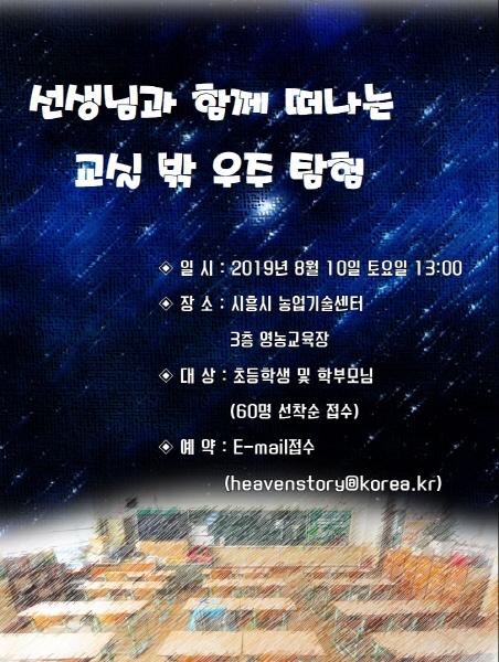 시흥시농업기술센터 천문관에서는 8월 여름방학을 맞아 오는 10일 오후 1시부터 농업기술센터 교육장에서 학생들에게 맞춤형 천문 특별 강연을 준비했다.