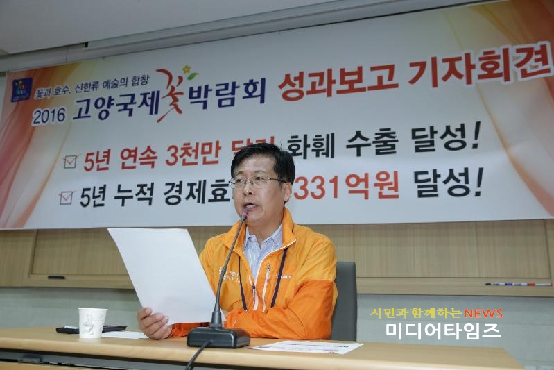 | 12일 최성 고양시장이 2016고양국제꽃박람회 성과보고 기자회견을 하고 있다. |