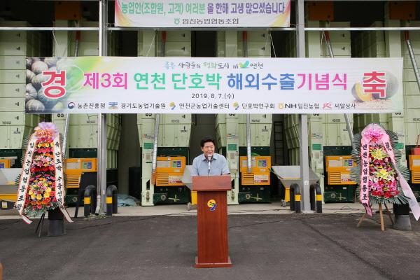 연천군과 농촌진흥청은 7일 임진농협 농산물 산지유통센터에서 제3회 연 천단호박 해외수출 기념식을 개최하고 단호박 1차 선적식을 가지며 연천 농산물을 본격적으로 알리는 자리를 마련했다. 수출되는 단호박은 300톤으로 해외 슈퍼마켓, 샐러드바 등 다양한 채널을 통해 소비자를 만나게 된다.