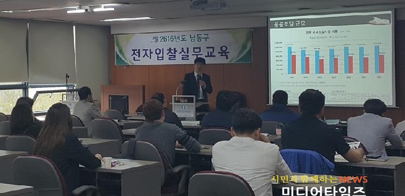 [미디어타임즈=신정식 기자] 인천 남동구(구청장 장석현)는 지난 10일 인천상공회의소 4층 전산교육장에서 관내 중소기업 관계자를 대상으로 맞춤형입찰정보시스템 활용방법 및 전자입찰 실무교육을 실시했다.