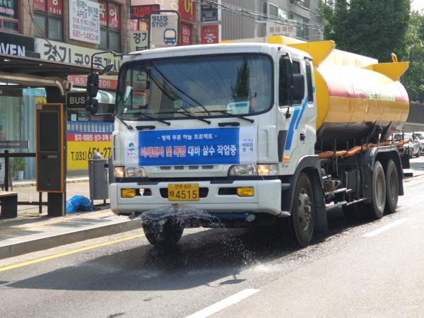 평택시는 미세먼지 제거와 폭염 저감을 위해 기존 운영되는 살수차 3대에 추가로 6대를 투입하여 총 9대 살수차를 10월까지 운영한다.
