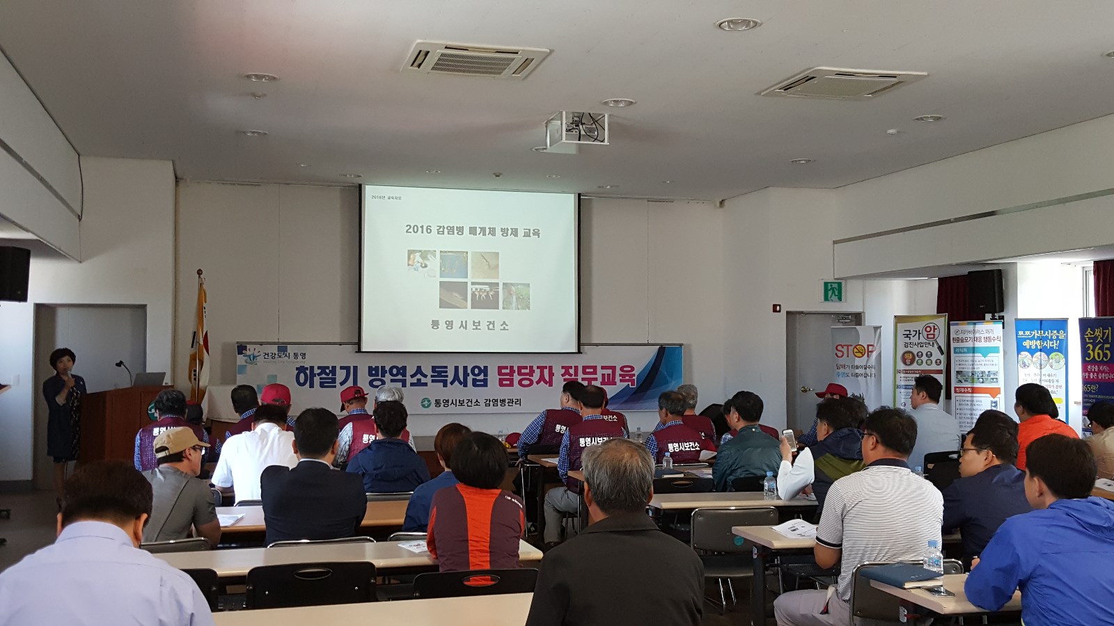 이날 발대식에는 관내 방역대행업체, 보건소 및 읍면동 방역소독반 관계자 60여명이 참석하여 지카바이러스 대비 흰줄숲모기 방제방법, 진드기·모기 매개질환, 효과적인 친환경 방역법, 방역기기 작동법 등에 대한 교육과 하절기 방역소독에 최선을 다할 것을 다짐하는 선서문을 낭독하며 감염병 없는 쾌적하고 깨끗한 건강도시 통영을 만들기 위한 결의를 다졌다.