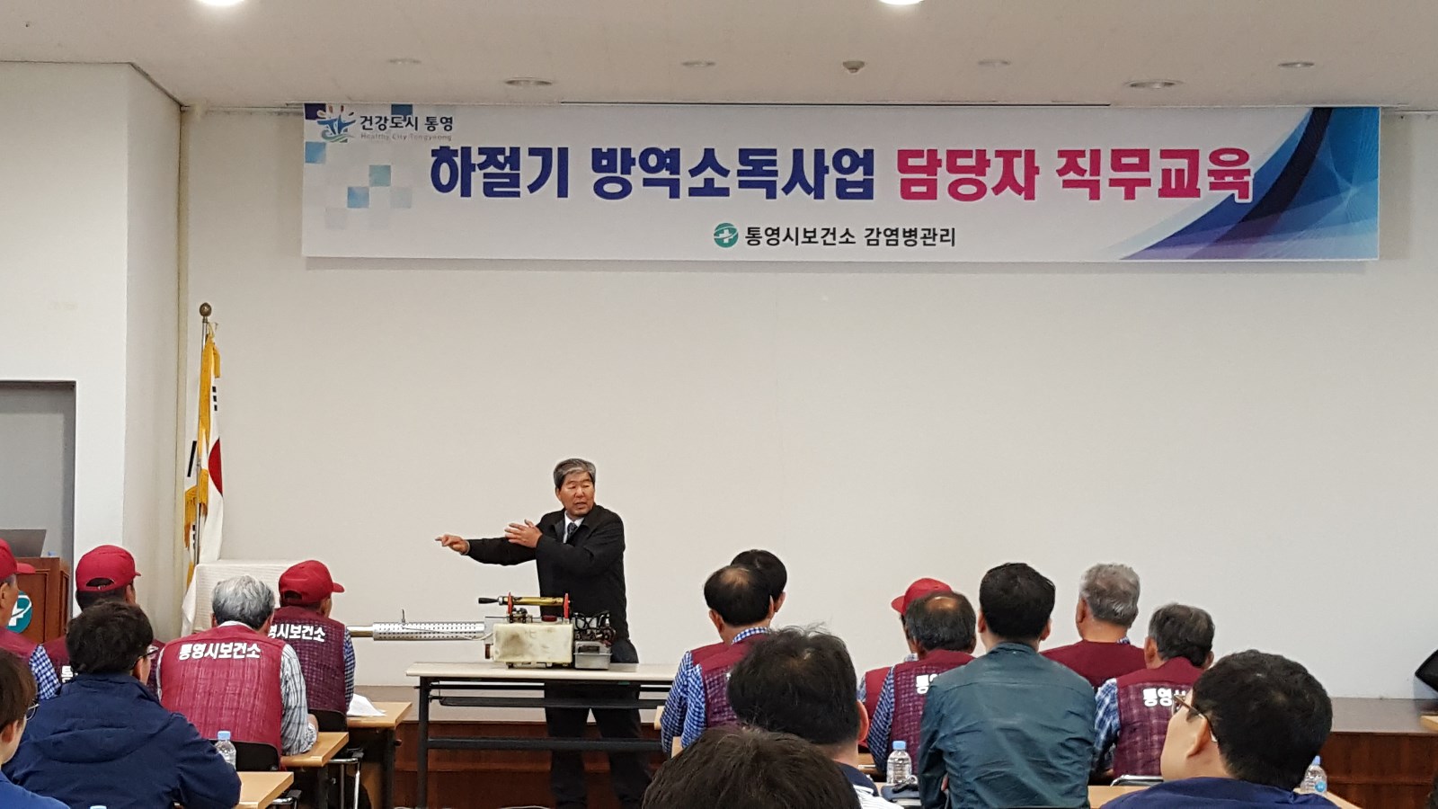 [미디어타임즈 = 최귀복 기자] 통영시보건소(소장 박주원)는 12일 오전, 유기적 방역협력체계 구축을 위한 민·관 합동 하절기 방역소독 발대식과 함께 방역소독관계자 직무교육을 병행했다.