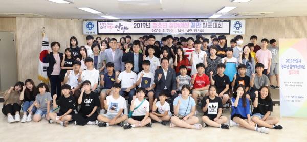 안양시는 주민참여예산과 같이 청소년들이 자신들과 관련한 사업들을 직접 제안하는‘청소년 참여예산 제안발표회’가 지난 7일 안양시청에서 있었다고 밝혔다.