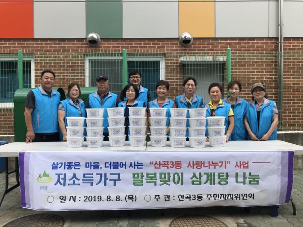 부평구 산곡3동 주민자치위원회는 다가오는 말복을 맞이해 8일 관내 저소득 가구 및 지역아동센터에 삼계탕 60인분을 전달했다.