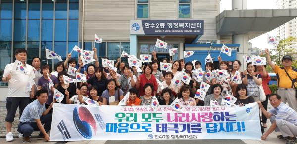 남동구 만수2동은 지난 7일 통장협의회 회원들과 함께 주민들을 대상으로 ‘광복절 범 구민 나라사랑 태극기 달기’운동을 펼쳤다.