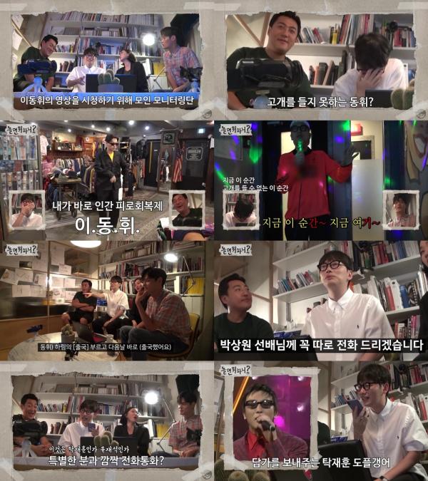MBC ‘놀면 뭐하니?’ 이동휘가 자신의 ‘릴레이 카메라’ 영상 앞에서 고개를 숙인 모습이 포착됐다. ‘놀면 뭐하니?’가 이동휘가 절친 최광제-장윤주-정혁과 함께 셀프 모니터링을 하는 모습이 담긴 스페셜 영상을 유튜브 채널을 통해 공개한 것. 영상 속에는 이동휘의 리얼 코멘터리와 절친들의 현실 리액션이 담겨 방송과는 다른 색다른 재미를 선사해 준다.