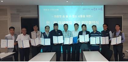 시흥시와 관내 ㈜금강주택을 비롯한 10개 업체가 8월 7일 시흥시 환경관리센터에서 고농도 미세먼지 대응 강화를 위한 협력체계를 구축하고, 살수장비 운영을 확대하는 등의 내용으로 ‘민·관 미세먼지 저감 업무협약식’을 개최했다.