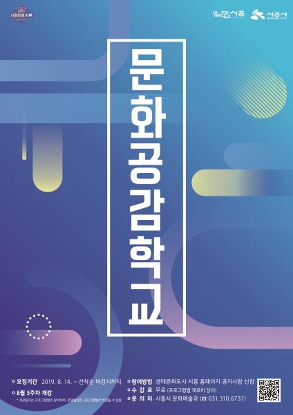 시흥시는 시민이 일상에서 누리는 문화예술교육을 확대하고 문화로 소통하고, 예술로 공감하는 시민들의 보편적 문화향유권을 보장하기 위해 2019 문화공감학교 하반기 문화예술교육 프로그램 참여자를 모집한다고 밝혔다.
