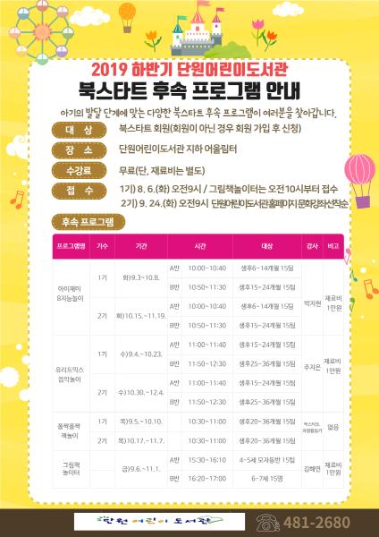 프로그램에 대한 자세한 문의사항은 단원어린이도서관 홈페이지 공지사항을 참고하거나 단원어린이도서관으로 하면 된다.
