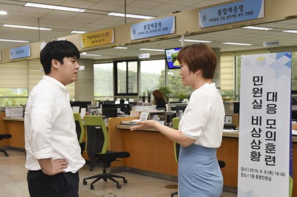 훈련은 비상시 민원응대 매뉴얼에 따라 민원인의 진정과 중재 시도, 폭언 폭행 등 비상상황 발생, 비상벨 호출, 피해공무원 보호와 일반 민원인 대피, 경찰 출동, 악성민원인 제압 등의 순으로 진행하는 등 실제상황을 통해 훈련 효과를 높였다.