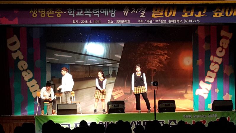 | 11일 흥해중학교에서 펼쳐진 학교폭력예방 뮤지컬 공연 |