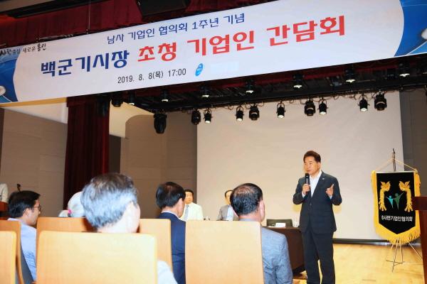 이날 간담회엔 남사면 기업인협의회장인 유병수 부국화학 대표를 비롯해 미담푸드, 대백인터내쇼날, 서울옥션, 동성에이엔티 등 50여사 대표들이 참석했다.