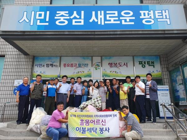 평택시 중앙동 주민자치위원회와 지역사회보장협의체는 지난 8일 거동이 불편한 홀몸어르신 15가구를 대상으로 이불세탁 봉사활동을 실시했다.