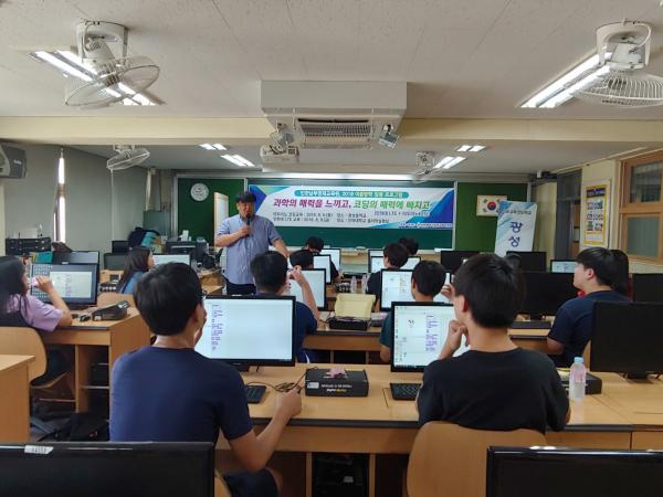 학생들은 지난 6일 광성중학교 컴퓨터실에서 진행된 ‘코딩의 매력에 빠지다.’에 발명반 학생 14명이 참여하여 뜨거운 여름을 이겨낼 선풍기를 기획했다.