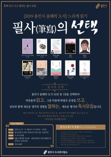 용인시는 책 읽는 문화를 확산하기 위해 시가 선정한 올해의 책을 필사 · 낭독 해보는 프로그램‘필사의 선택’참가자를 모집한다고 9일 밝혔다.