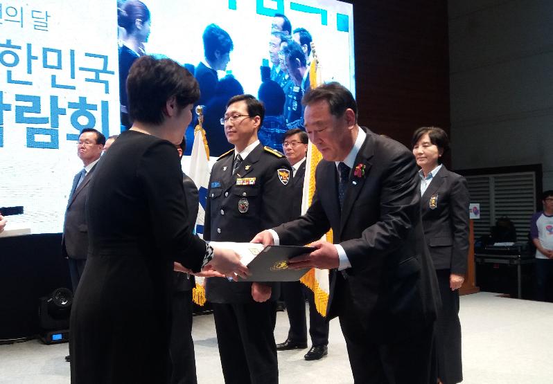 | 지난 12일 창원컨밴션센터에서 개최된 ‘제12회 대한민국 청소년 박람회’에서 대통령 표창 수상 장면 |