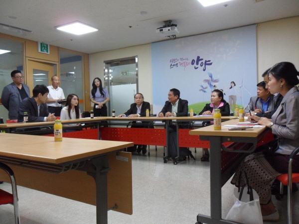 안양시는 9일 톤케오 푸타카일랏 라오스 사마나켓주 부지사 등 10명이 공간정보시스템 견학 차 안양을 방문했다고 밝혔다. 라오스 고위공무원의 방문은 금년 3월에 이어 두 번째다.