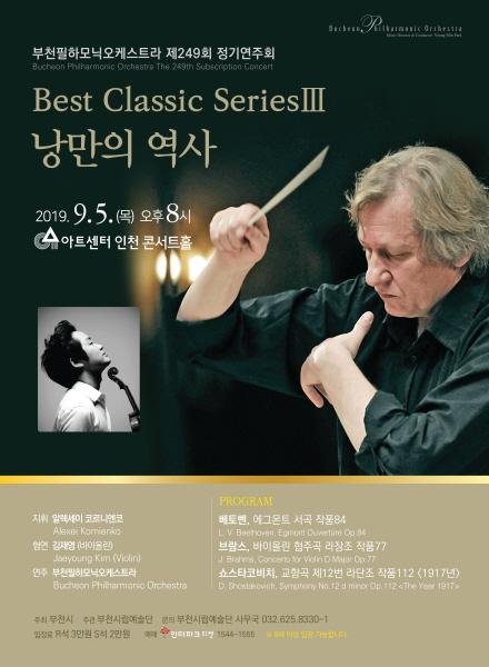 부천필하모닉오케스트라가 정기연주회 시리즈로 2017년부터 이어온 ‘Best Classic Series’는 우리에게 잘 알려진 클래식 명곡을 부천필의 스타일로 재해석하여 소개하는 음악회이다. 2019년에 진행된 ‘고전과 낭만사이’, ‘발트해를 넘어’를 지나 어느덧 세 번째를 맞는 ‘Best Classic Series’는 ‘낭만의 역사’라는 부제로 관객을 만난다.