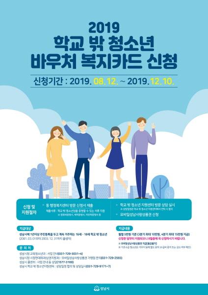 성남시가 이달부터 학교 밖 청소년에게 월 5만원의 바우처를 모바일 성남사랑상품권으로 지급한다. 시는 ‘학교 밖 청소년 바우처 복지카드 지원 사업’을 시행한다고 12일 밝혔다.