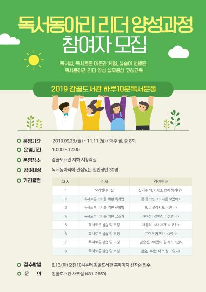 다음달 23일부터 8주 동안 진행되는 과정은 감골도서관의 ‘하루10분 독서운동’의 일환으로 마련됐다.