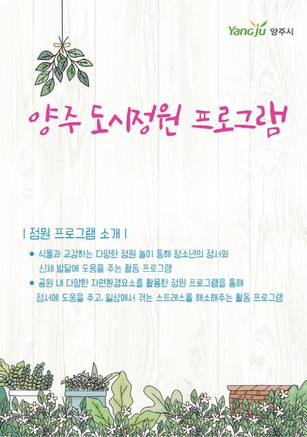 양주시는 오는 9월부터 11월까지 청소년과 성인 대상 ‘도시정원 프로그램’을 진행한다.