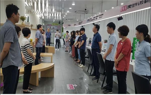 여주시청 행복민원과는 8월 ‘직원 친절실천 다짐’을 위해 지난 8일 아침 행복민원과 전 직원들이 모였다.