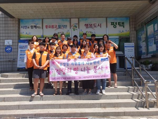평택시 중앙동 자원봉사 나눔 센터는 지난 9일 학생 20여명과 함께 대한적십자사 경기도지사 남부 봉사관에서 ‘사랑의 빵’을 만들어 관내 성육보육원, 애향보육원 및 아동복지센터에 배부하는 나눔의 봉사활동을 실시했다.