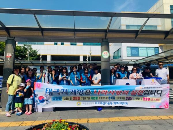 바르게살기운동 평택시 중앙동위원회는 지난 10일 서정리역 앞에서 무료 태극기 나눔 행사 및 태극기 달기 캠페인을 진행했다.