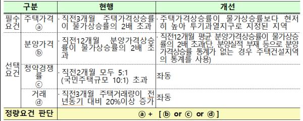 이에 필수요건을 기존 ‘직전 3개월 주택가격상승률이 물가상승률의 2배 초과인 지역’에서 ‘투기과열지구로 지정된 지역’으로 개정한다.