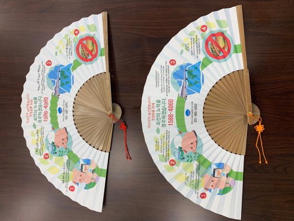 김포시농업기술센터는 아프리카돼지열병 유입 방지를 위한 방역 요령이 새겨진 ‘방역 홍보용 부채’를 제작해 배부했다고 밝혔다.
