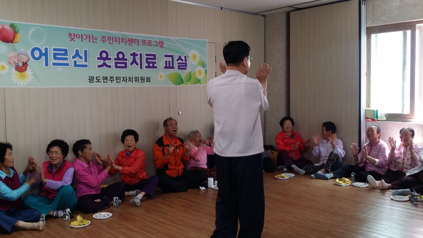 [미디어타임즈 = 최귀복 기자] 지난 12일(목) 10:30분부터 광도면주민자치위원회(위원장 김신환) 주관으로 100세 건강을 위하여 찾아가는 주민자치센터 프로그램 “어르신 웃음치료교실”을 노산마을회관에서 마을 어르신 30여명이 참여한 가운데 어르신 건강관리 강사(염정범)를 모시고 첫 개강을 했다.