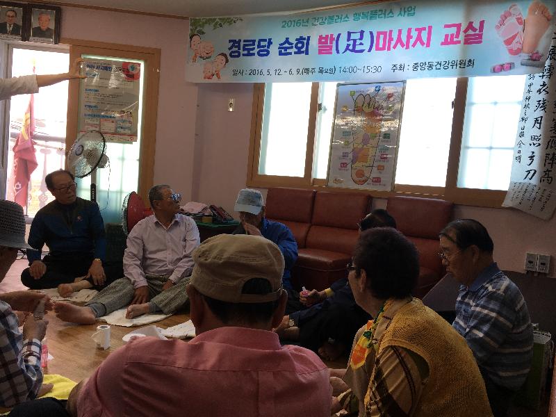 한편, 중앙동 건강위원회는 앞으로 3주간 관내 경로당을 순회하면서 발마사지교실을 개최할 예정이다.