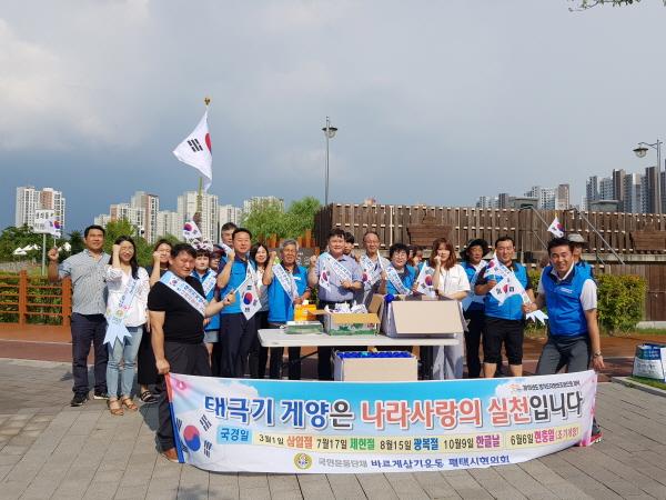평택시 바르게살기운동 비전1동 위원회 는 지난 9일 배다리 생태공원에서“나라사랑 태극기 게양 캠페인”을 벌였다.