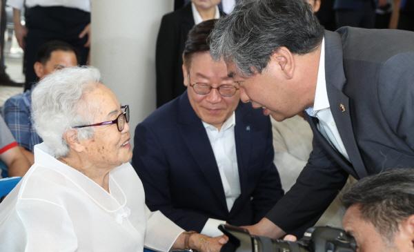 일본군 위안부 피해자 기림일을 나흘 앞두고 이날 오전 사회복지법인 나눔의 집 주관으로 광주 나눔의 집 광장에서 열린 행사에는 일본군 성노예 피해자인 강일출·이옥선·이옥선 할머니 세 분을 비롯해 이재명 경기지사, 진선미 여성가족부 장관, 경기도의회 안혜영 부의장, 정대운·박덕동·안기권·이명동·이종인 의원 등 200여 명이 참석했다.