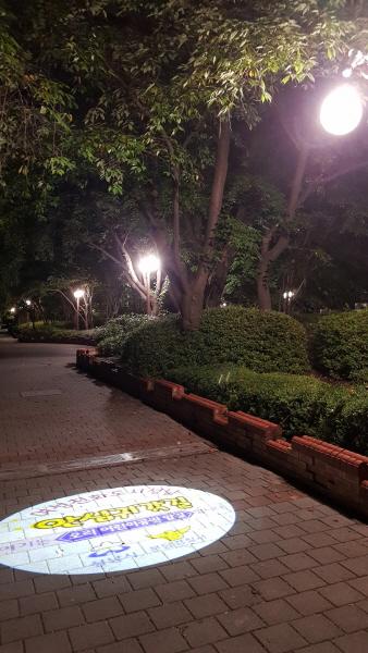 로고젝터는 장치 렌즈에 ‘여성친화도시 성남’ ‘안심 귀갓길’ 등의 로고와 현 위치, 관할 경찰서 등의 내용을 새겨 LED 조명을 바닥에 투사·표시한다.