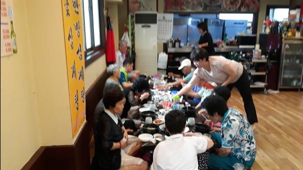 효성2동 주민자치위원회에서는 어르신들이 여름철이면 무더위로 기력이 쇠하여지는데 기력을 돋구는 음식으로 매년 삼계탕을 대접하였으나, 올해는 어르신들이 갈비탕을 선호하여 갈비탕과 수박, 떡 등을 준비하여 식사 대접을 했다.